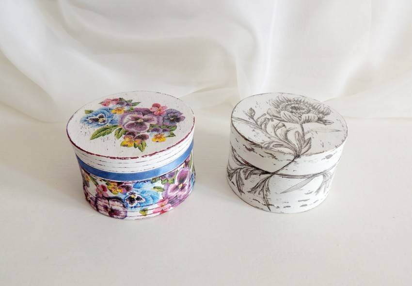 Шкатулка в стиле прованс, выполненная в разных цветах