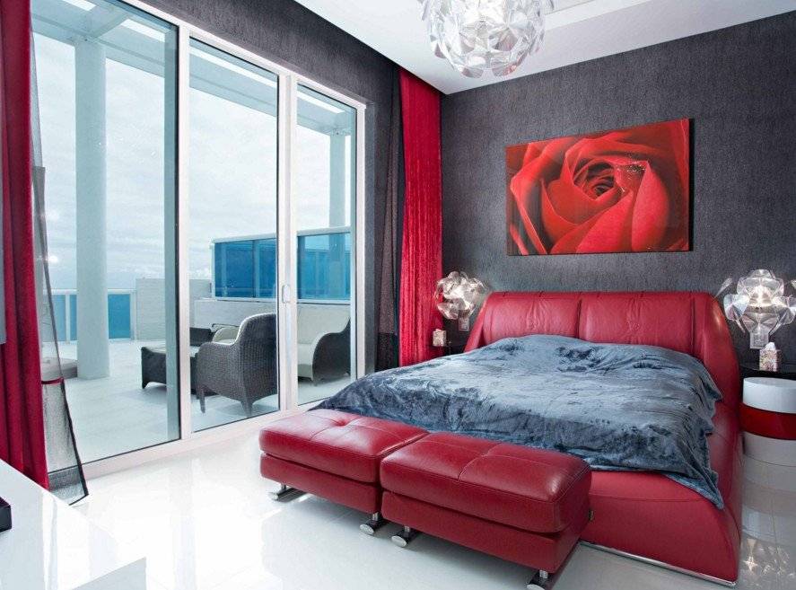 Некоторые цвета – например, красный или фиолетовый, лучше не использовать при обустройстве спального помещения. Их можно применять точечно. Эффектно будет выглядеть красное постельное белье, стильные картины, оригинальные элементы декора.