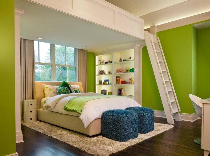 в спальне ребенка постарше желательно использовать приглушенные цвета, с минимальной мебелью. Мебель спальни подростка – невысокая