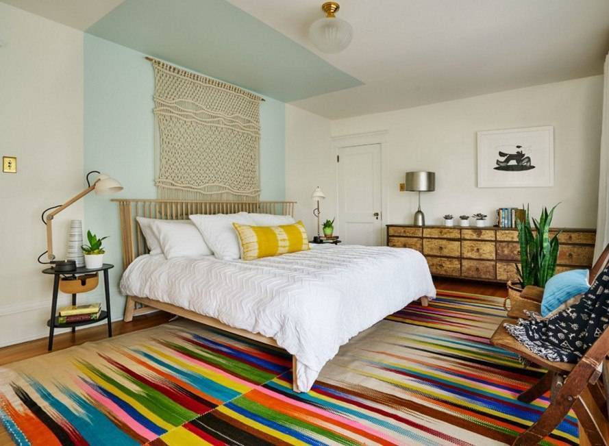 Для разнообразия атмосферы помещения стоит акцентировать внимание на одной из стен, лучше за изголовьем спального места.