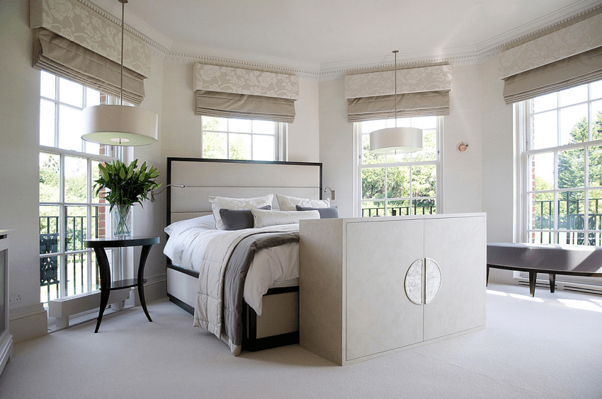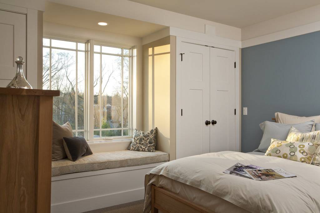Не рекомендуется ставить кровать возле окна. Во-первых, это нарушит интимность, а во-вторых, затруднит подход к окну.