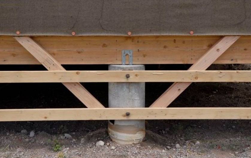 Учитывая уровень промерзания грунта, принимают глубину заложения фундамента. Например, если почва промерзает в глубину на 1,6 метра, то опоры опускают в скважины ниже на 50 — 100 мм.