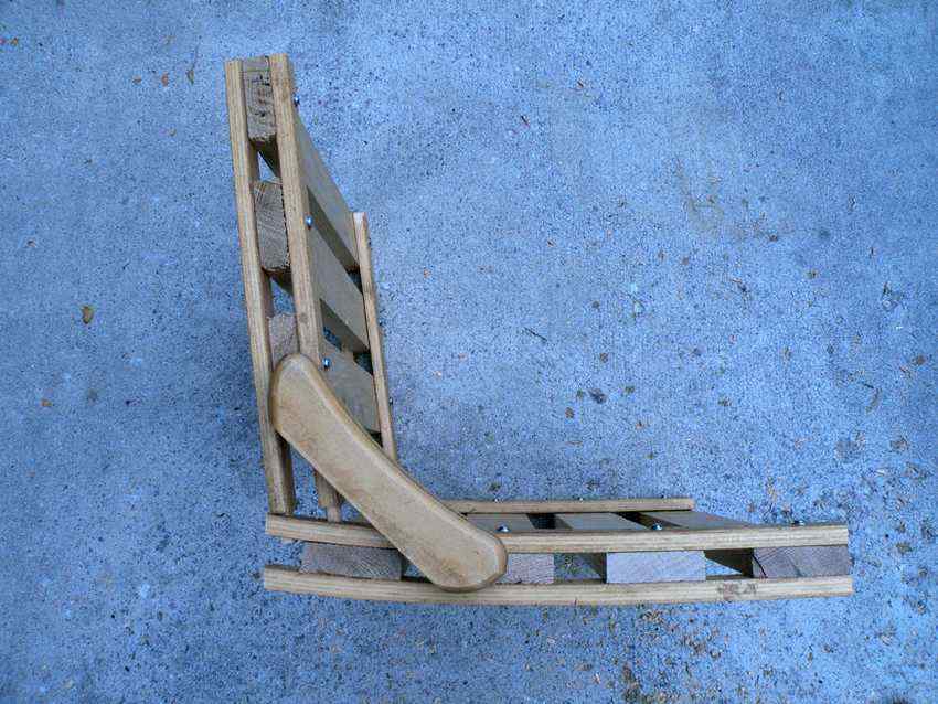- Крепим сиденье под углом 15 градусов на передние вертикальные бруски и опору под колени.