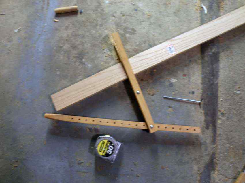 - Из брусков нарезаются все детали согласно чертежу. Вертикальные бруски: два передних и один задний. Горизонтальные: поперечные планки (горизонтальные ножки). Деталь с пазами для регулировки высоты.