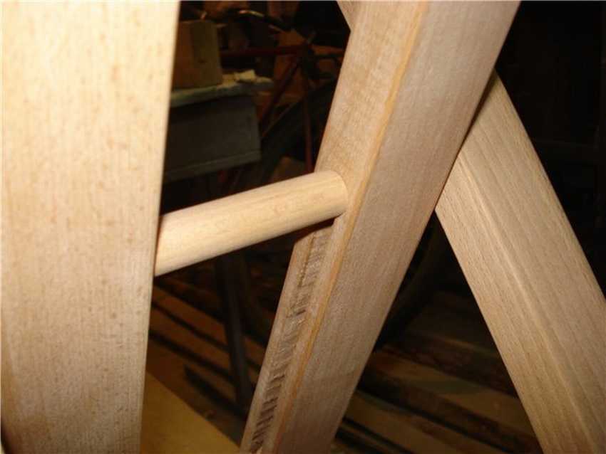 - Проделывают нужные отверстия, прочищают стамеской. На рейках и проножках намечают размеры для шипов, аккуратно вырезают.