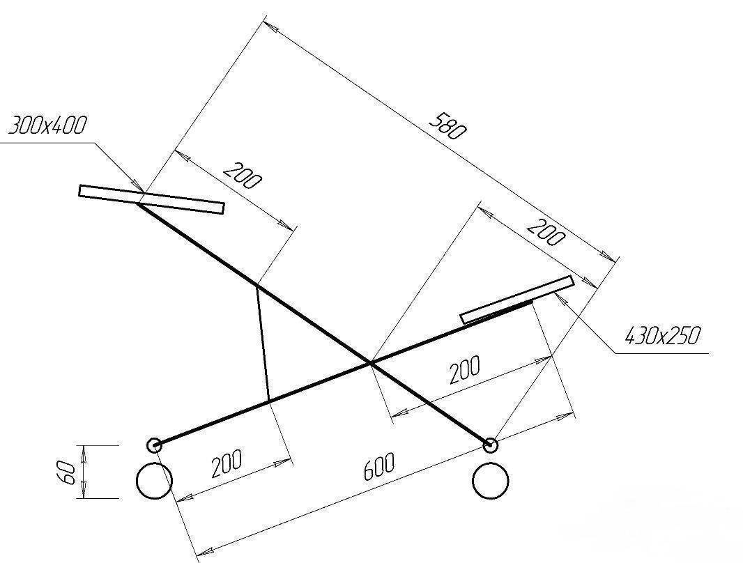 Сразу следует нарисовать чертеж складного стула. За счет того, что это очень простая конструкция, никаких сложностей при выполнении данной задачи не возникнет. Чрезмерно объемные модели чертить не нужно. Главное, определиться с размерами деталей (шириной и длиной) и обозначить их точное расположение.