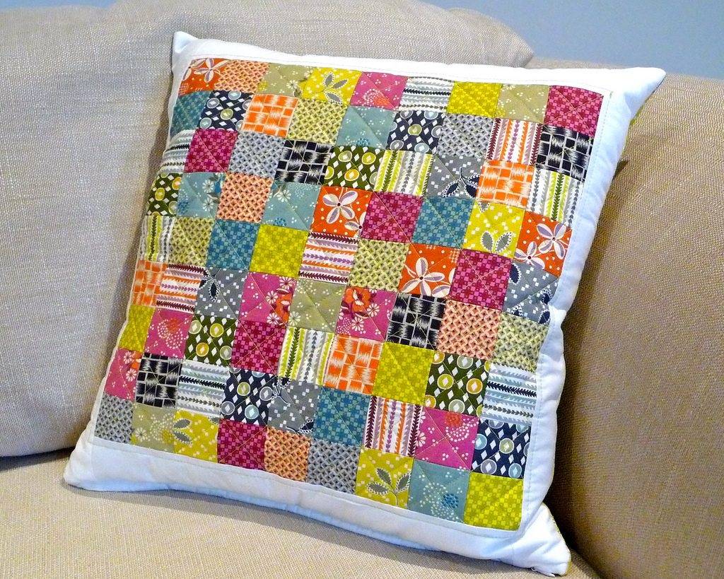 Оригинально смотрятся подушки, сделанные из кусочков ткани.