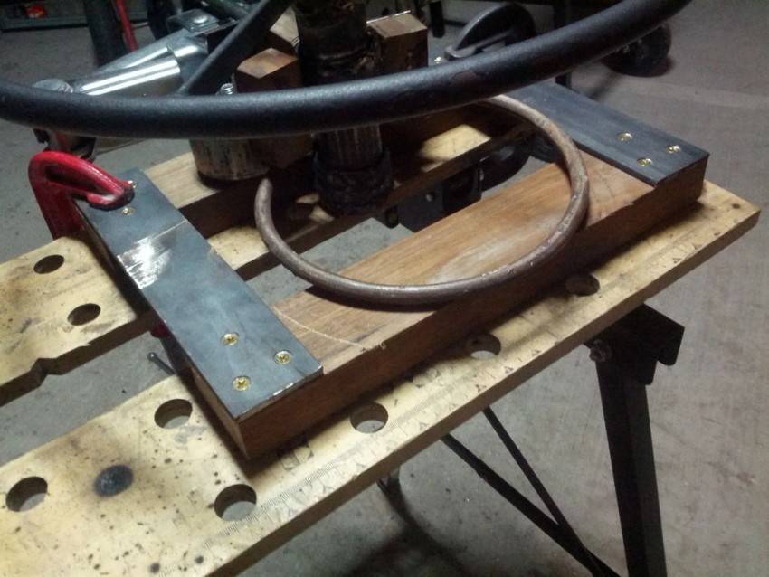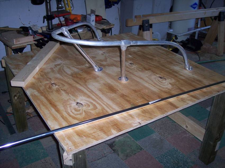 Вертикальные оси и оснастка должны быть расположены в подшипниках качения. В качестве основания можно использовать практически любой верстак или иную надёжную опору. Простейший самодельный трубогиб своими руками можно соорудить и без отдельного гибочного узла.