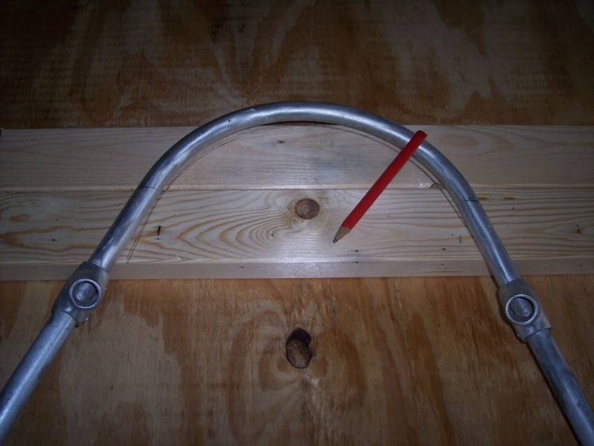 - Если изгиб осуществляется при помощи шаблона, то для того, чтобы труба плотно прилегала к образцу, возможно применение железных крючков для упора.