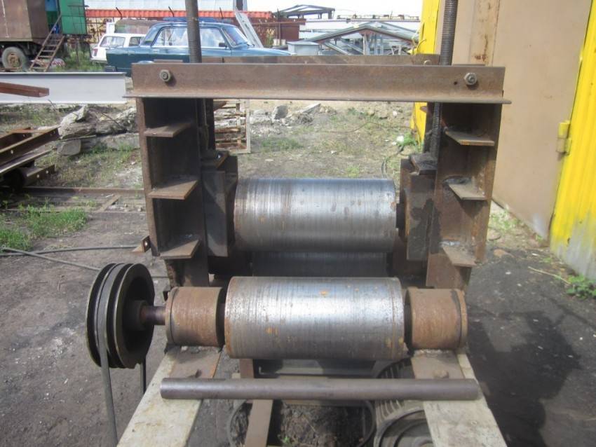 Возможен вариант, когда сверху и снизу конструкции устанавливаются деформирующие ролики (верхние и нижние). Желательно, чтобы в нижней части оборудования установить третий ролик, но такая процедура повлечет за собой необходимое вырезание в станине отверстия.