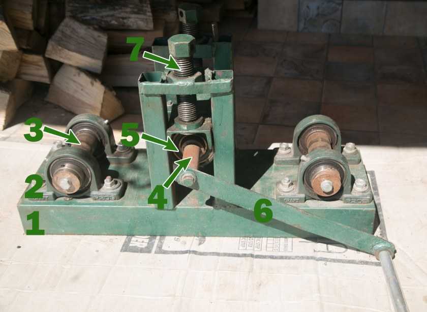 Важно! Лучше пользоваться шплинтами для крепления, а не сваркой, поскольку должен быть минимальный люфт отдельных деталей устройства во время гибки, что невозможно при сваренных частях инструмента. Главные этапы. Сначала необходимо на станину инструмента установить подающий вал, на торце которого закрепить шкив