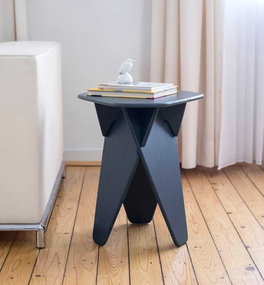 Это еще один удачный пример стула для малогабаритных помещений. Конструкция изделия позволяет иметь в своем арсенале несколько таких табуретов – часть из них держать в разложенном состоянии, а часть хранить в шкафу или нише, ведь размеры стула в сложенном виде имеют толщину около 6-8 сантиметров. При необходимости Вы всегда сможете его достать и удобно рассадить за столом всю семью или гостей дома.