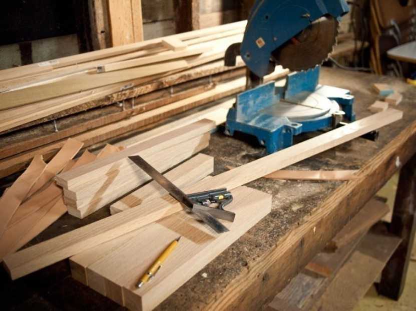 - брусья выбранной породы дерева для ножек стула с доской для перекладин;