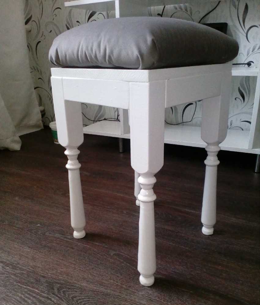 - Собранный табурет нужно проверить на предмет дефектов и устранить их — замазать трещины, подкрасить, нанести лак там, где его нет.