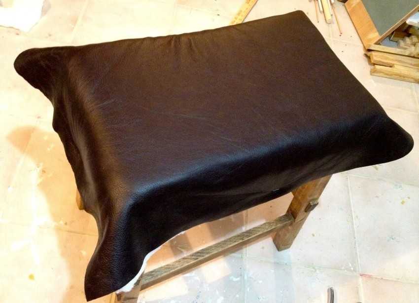 Функцию сиденья будут выполнять ремни: кожаные брючные или синтетические, которые используются для безопасности в автомобилях. Ремни натягиваются на каркас по длине, края загибаются на внутреннюю сторону, закрепляясь декоративными гвоздиками. Затем по аналогичной схеме протягивается поперечный ряд. Таким образом, ремни переплетаются между собой, образовывая узор.