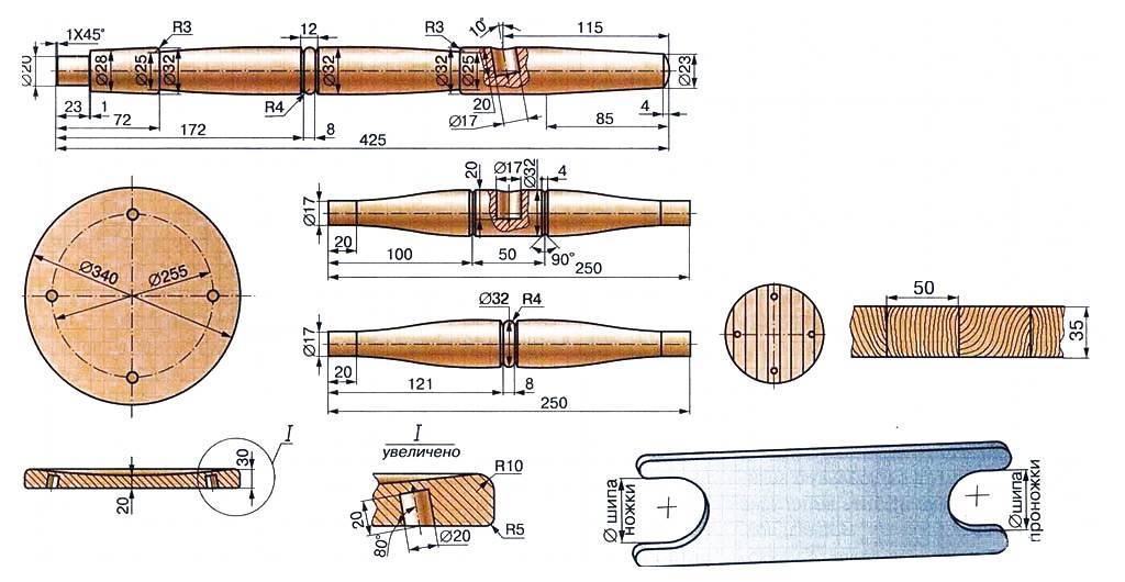 Еще один важный компонент, без которого нельзя начать создание табурета – чертеж или подробный план создания табурета. Такая инструкция по пунктам особенно будет востребована у людей, которые не имеют опыта создания таких изделий. Схемы должны содержать все необходимые характеристики не только самого изделия, но и его составных элементов.