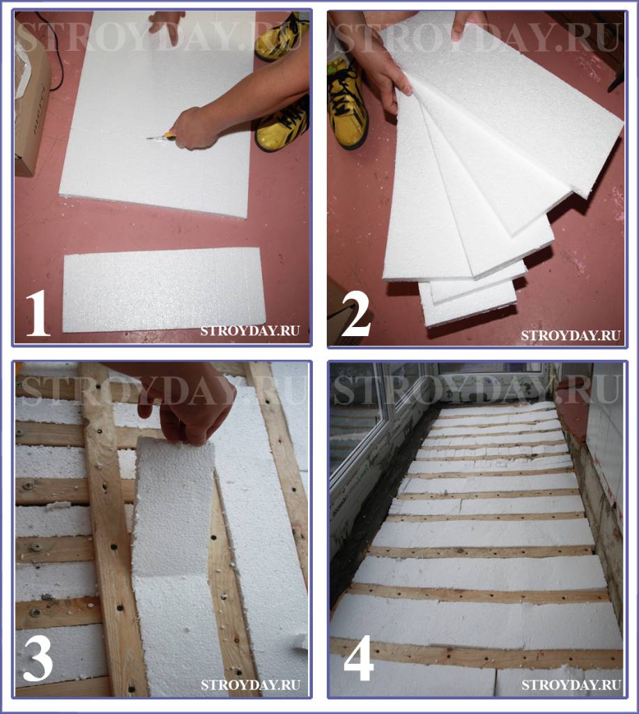 Утепление бетонного пола на балконе вторым слоем пенопласта