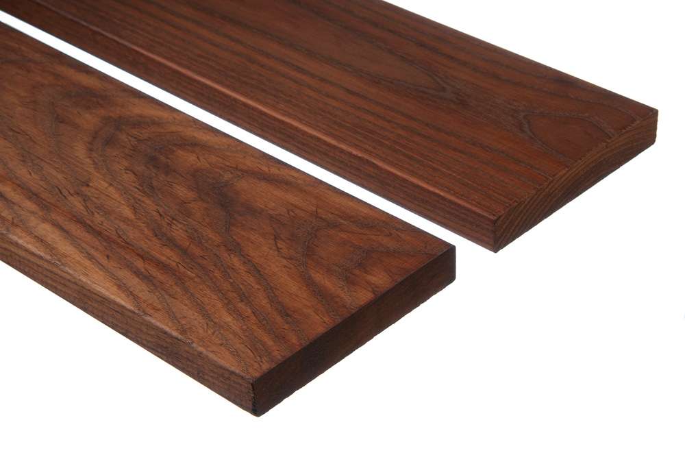 Вторым этапом улучшения свойств доски, предназначенной к укладке на открытом воздухе, стала термодревесина. Ее получают, обрабатывая материал высокой температурой (+125 — +190С). В результате происходят изменения в его структуре: на 50% снижается водопоглощение и возрастает прочность. Усушка и разбухание волокон при этом сводятся к минимуму.