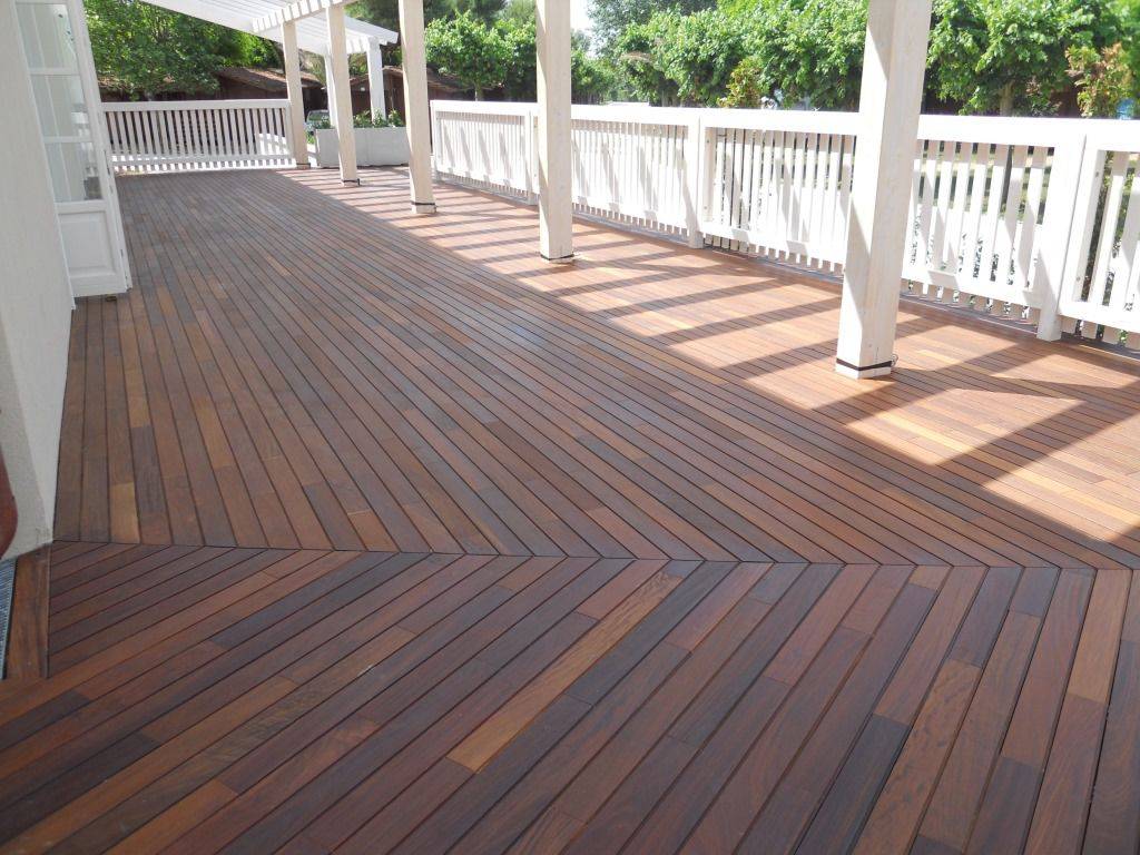 То есть обычной, термообработанной или прессованной древесины особо стойких к климатическим перепадам, износу, сколам и царапинам пород. Это может быть тик, лиственница, бамбук, термоясень, ироко, азобе и др. После монтажа доски обрабатываются различными средствами для наружных работ (террасное масло, воск декоративный или финишная масляно-восковая смесь);