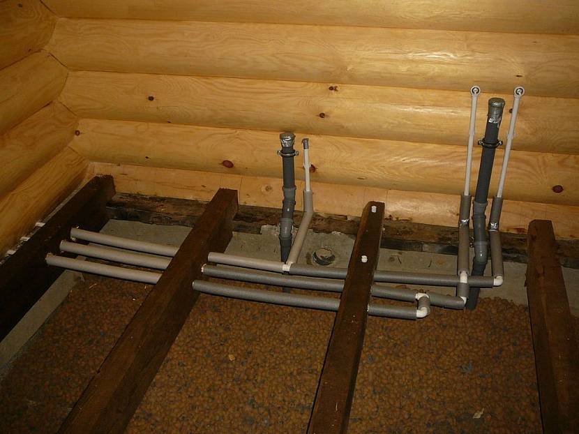 - если трубы проходят в стенах и лагах через сквозные отверстия, то они должны быть большого диаметра с эластичными уплотнителями, которые бы не мешали их смещению;