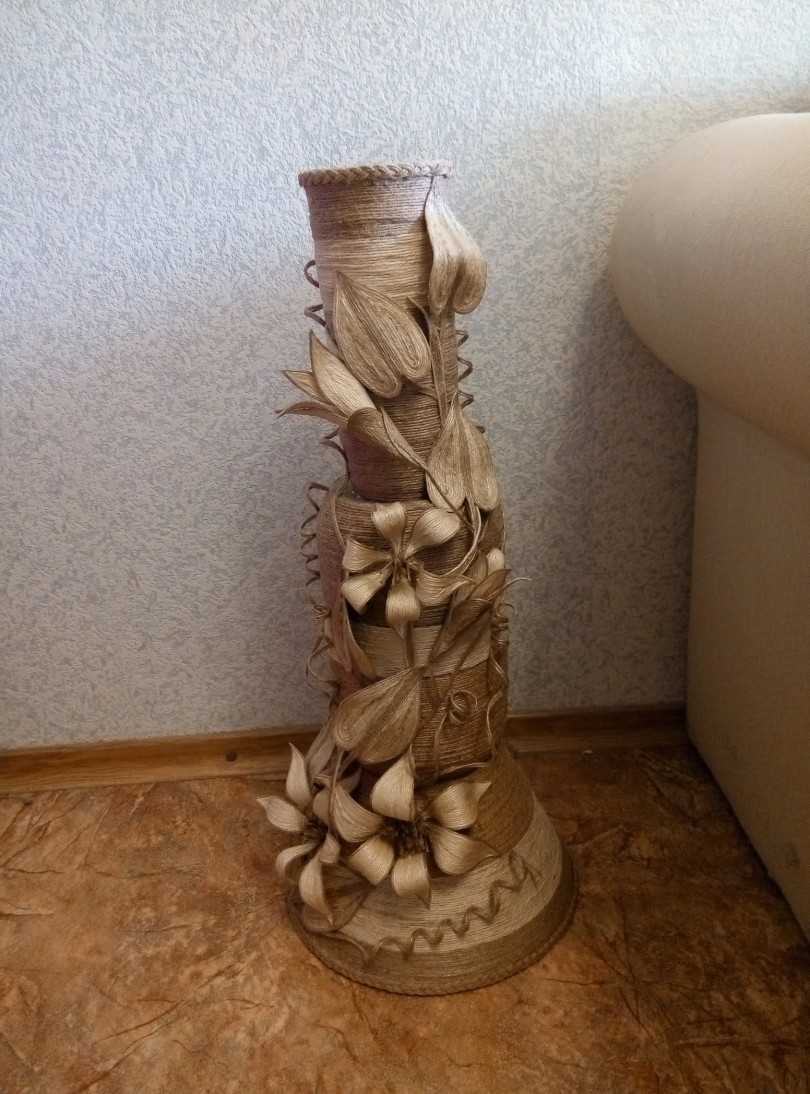 Очень часто применяются уже готовые вазы без оформления, которые декорируются уже вручную. Декор напольных ваз своими руками так же поможет разнообразить интерьер.