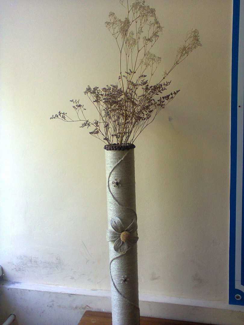 • Подберите цветовую гамму и материал для украшения вазы полностью подходящий по стилю в комнату, в которой планируете поставить готовую напольную вазу. Иначе может возникнуть чувство разочарования, а все труды пойдут насмарку.