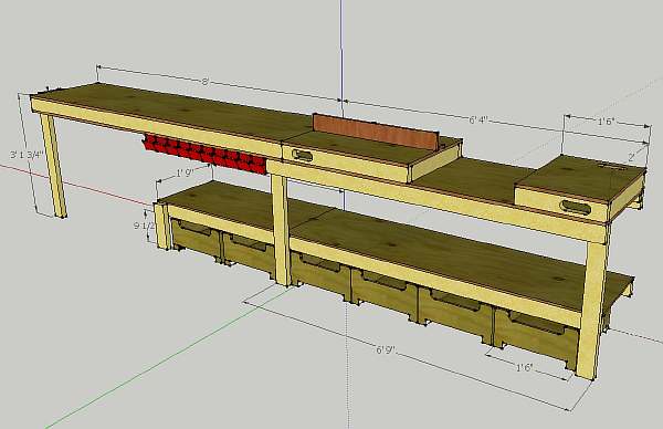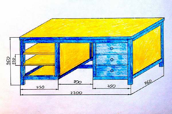 Второй способ заключается в составлении чертежа будущего верстака и в соответствии с ними осуществляется подбор материалов. В такой ситуации стоимость оборудования может оказаться выше, но при этом конструкция будет хорошо продумана. По какому пути стоит пойти, решает только мастер.