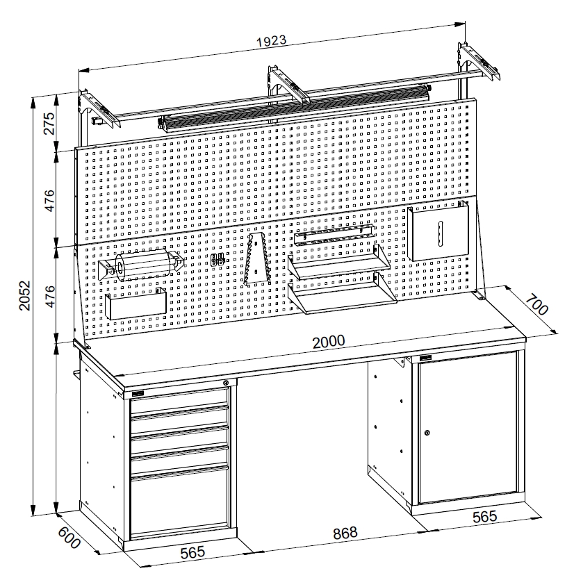 Стандартная модель содержит в себе множество выдвижных ящиков для хранения крупных инструментов.