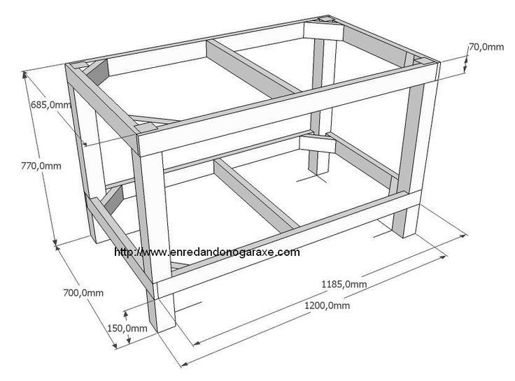 Первоначальным действием будет сооружение нижней рамы, в которой будут располагаться инструменты и слесарный станок. Для этого доски отпиливают до нужного уровня. Далее их соединяют между собой при помощи саморезов. В итоге должна получиться прямоугольная форма.