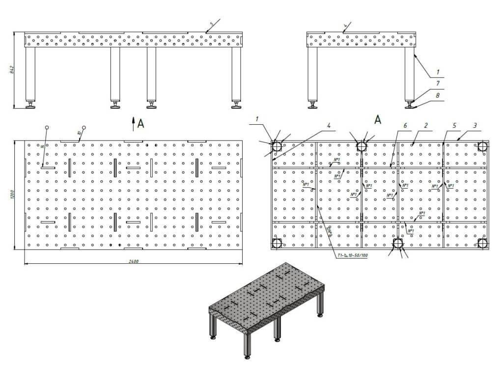 Сварочный стол на регулируемых опорах с перфорированной столешницей