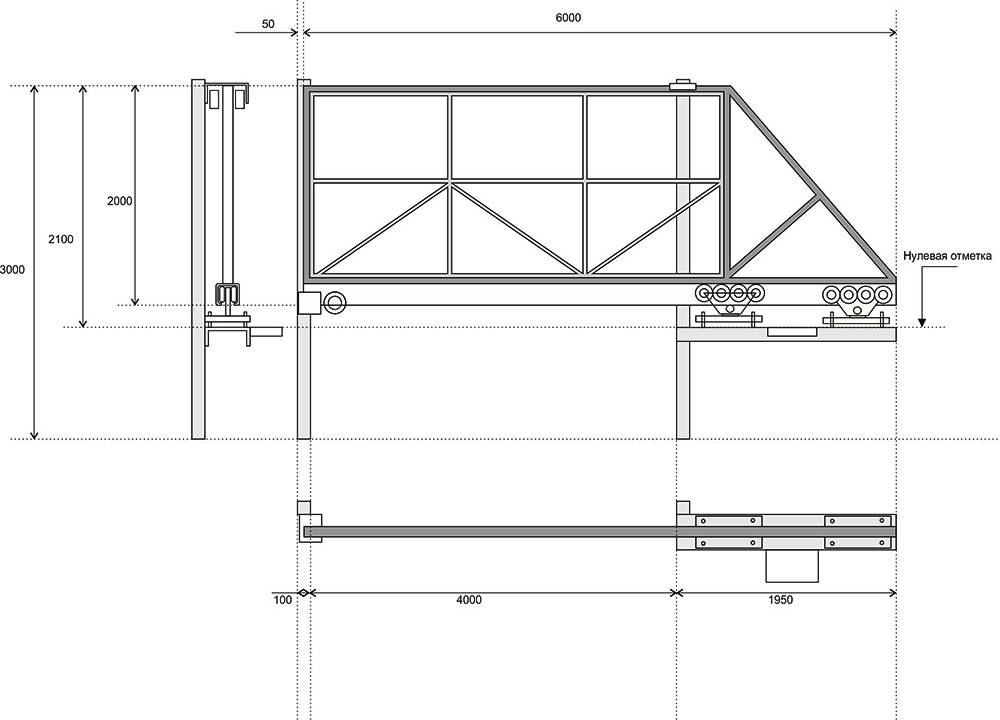Совсем несложно изготовить откатные ворота своими руками. Чертежи, фото и видео материалы помогут разобраться с особенностями монтажа таких конструкций. Для откатных ворот нужно предусмотреть свободное пространство вдоль забора. Примерные размеры створки приведены на рисунке.
