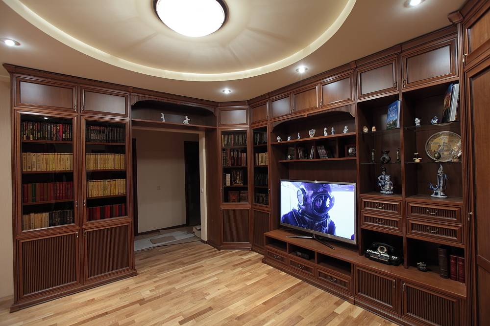 - Экономятся денежные средства и материалы, так как нередко практически все стенки такой мебели заменяются стенами помещения, поэтому требуется только фасад и элементы наполнения;