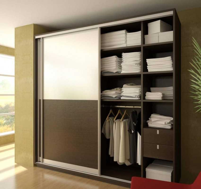 - Шкаф-купе с раздвижными створками и жестким каркасом. Можно выделить два подвида: с роликовым механизмом движения дверей и с монорельсом. После появления на рынке такие варианты завоевали популярность разнообразием моделей, дизайна, внутреннего наполнения. Кроме того, преимуществами является многофункциональность, экономия места в помещении.