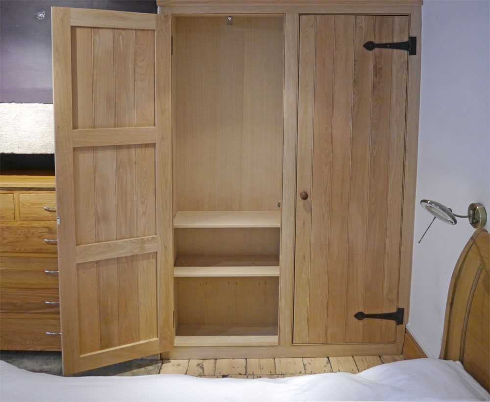 Древесина является прочным, долговечным материалом. Однако для конструирования шкафа в кладовку и на лоджию сырье не используется из-за невысокой влагостойкости. Материал оптимален для мебели в спальную либо гостиную. Рекомендуется обработать поверхности олифой, прозрачной водостойкой эмульсией. Необходимо учитывать высокую стоимость натуральной древесины и потребность в регулярной обработке материала лаками, пропитками.