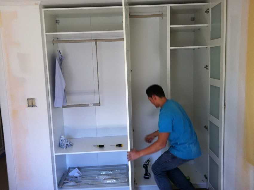 в зависимости от того, ровные ли стены, потолок в том месте, где планируется встраивать шкаф, определяется фронт дальнейших работ. Необходимо исключить все неровности поверхностей, чтобы конструкция была устойчивой и не разрушилась;
