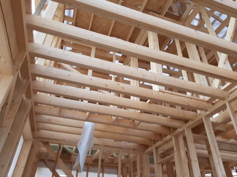 Потолочные балки крепятся к верхней обвязке методом врубки или на металлические уголки. Врубка не должна превышать 50% от толщины бруса верхней обвязки. Сечение и шаг балок зависит от назначения второго этажа.