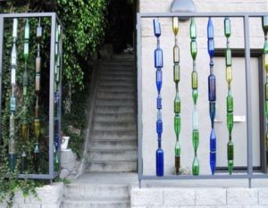 Декоративное ограждение из фигурных стеклянных бутылок