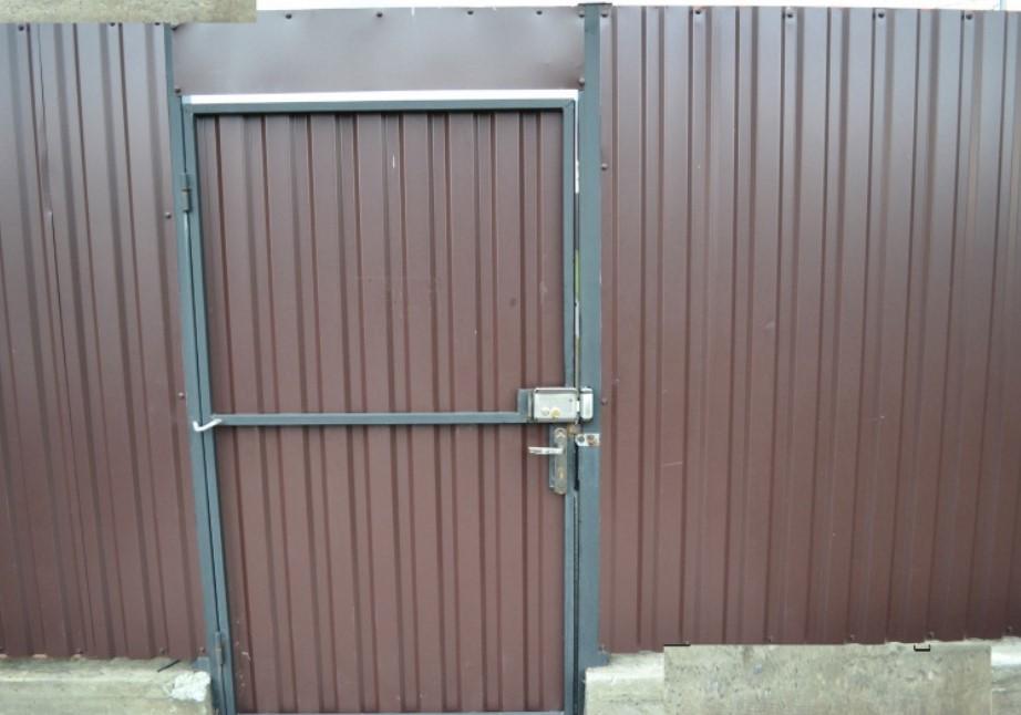 Во время установки дверей или ворот из профлиста поперечина каркаса чаще всего находится на высоте 950 мм. Если этот нижний порог отсутствует, то для замка нужно будет сваривать специальную пластину. Непосредственно конструкцию следует установить так, чтобы на поперечине был какой-либо из крепежей. Это поможет сделать калитку прочной.