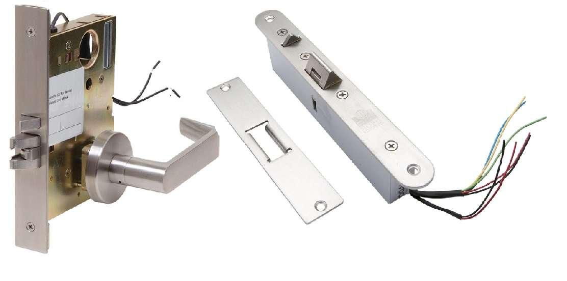 - с электроблокировкой. Открывание и запирание замка происходит чисто механическим способом, но в крайнем закрытом положении ригеля производится его блокировка с помощью дополнительной защелки. Она приводится в действие соленоидом;