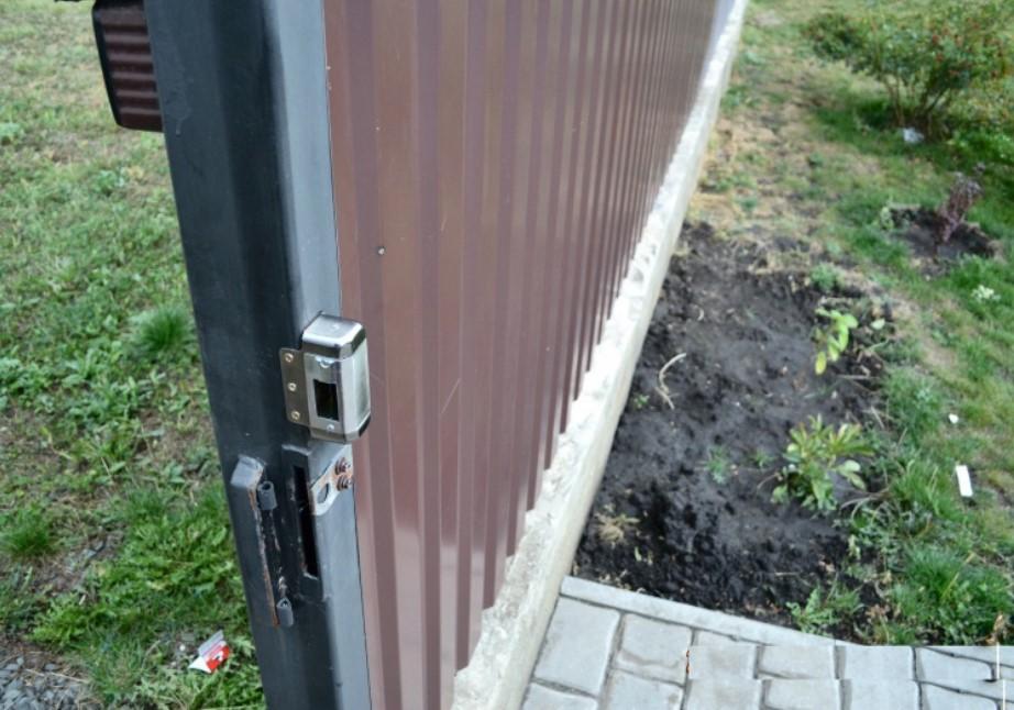 В процессе установки замка на калитку из профнастила своими руками нужно четко придерживаться инструкции. При наличии необходимых инструментов и опыта обращения с ними работа не займет много времени.