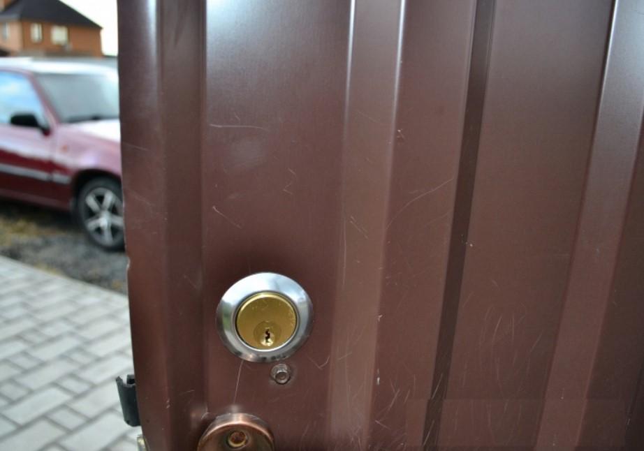 После в профнастиле прорезают отверстие под ключ и, если требуется, ручку.