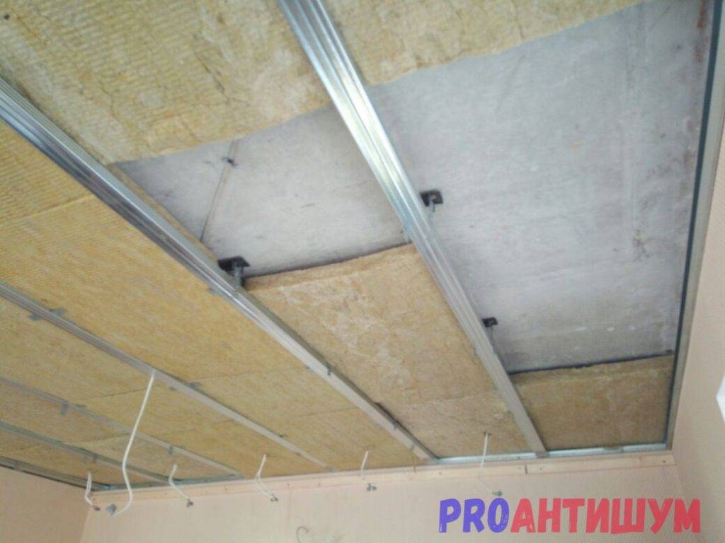 профиля укладываются шумоизоляционные плиты и зашиваются листами гипсокартона.