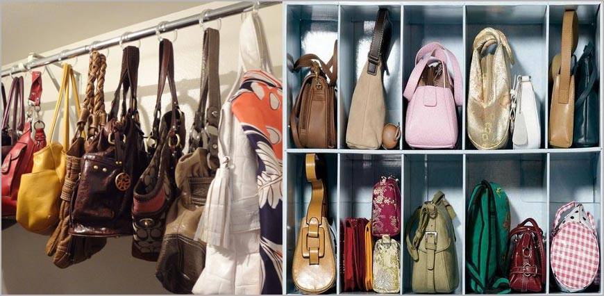 Чтобы на аксессуарах не появилось заломов, их необходимо держать вертикально. Мягкие изделия – подвесить, вещи с жесткой формой – поставить на полку. Держать в мешочках или «родных» чехлах.