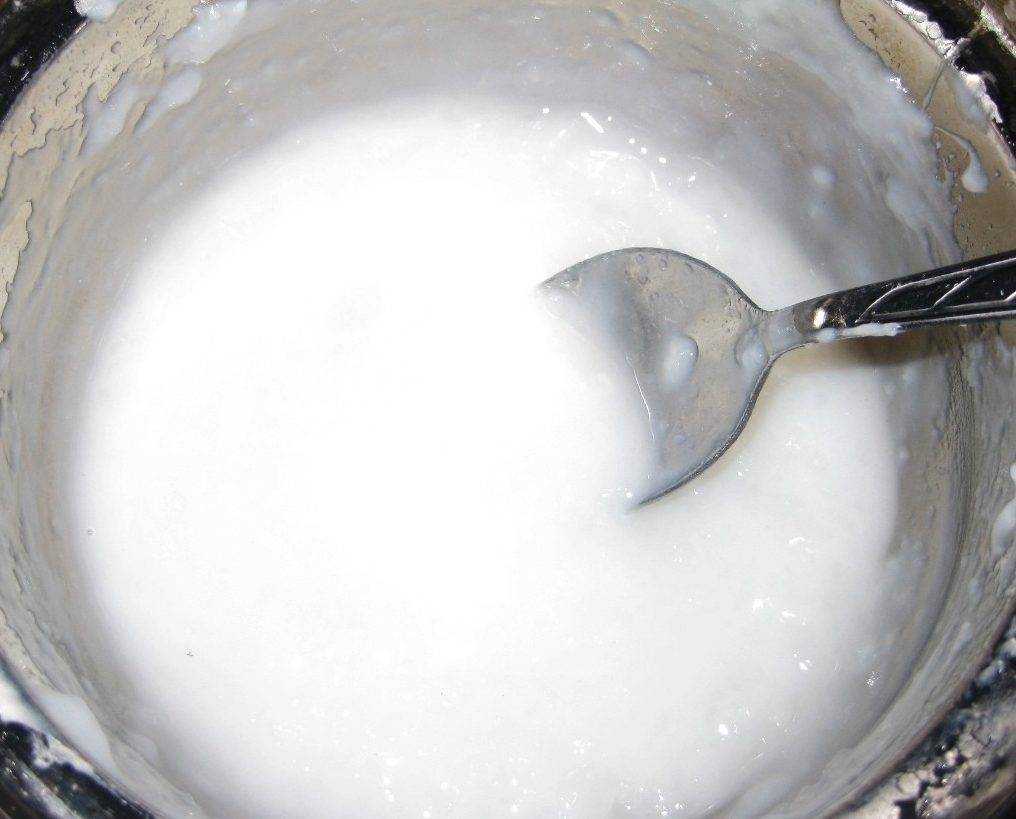 4. Чтобы удалить побелку и при этом не оставить пыли и грязи, есть еще один доступный вариант – это использование клейстера. Для этого потребуется сварить мучной клейстер, остудит и нанести его валиком. После дайте ему подсохнуть, где-то десять минут, а затем попробуйте убрать небольшой слой.