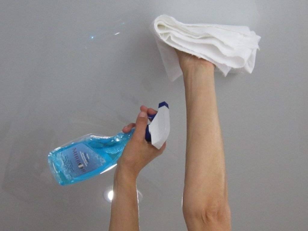 По окончании процесса, когда потолочная поверхность высохнет, проверьте результат: проведите пальцем по потолку, если он чистый, вы все сделали верно.