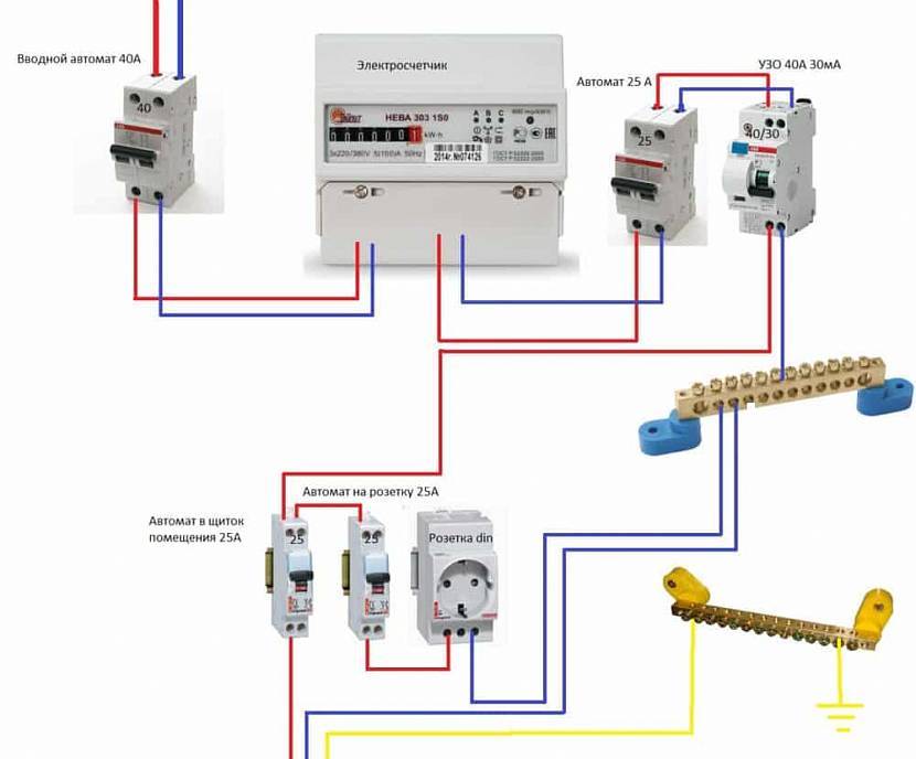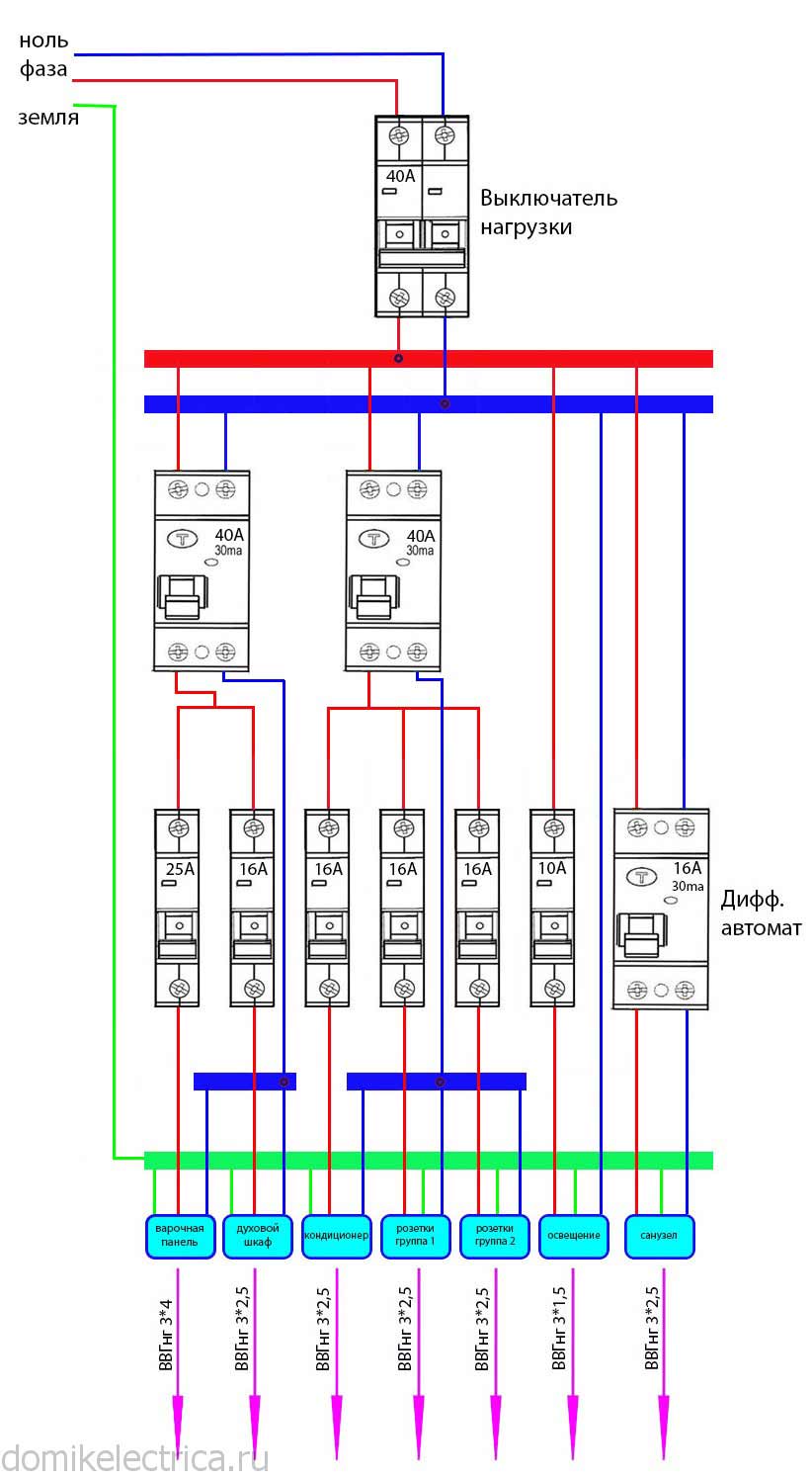 Схема электрощитка в квартире с УЗО в отдельных группах