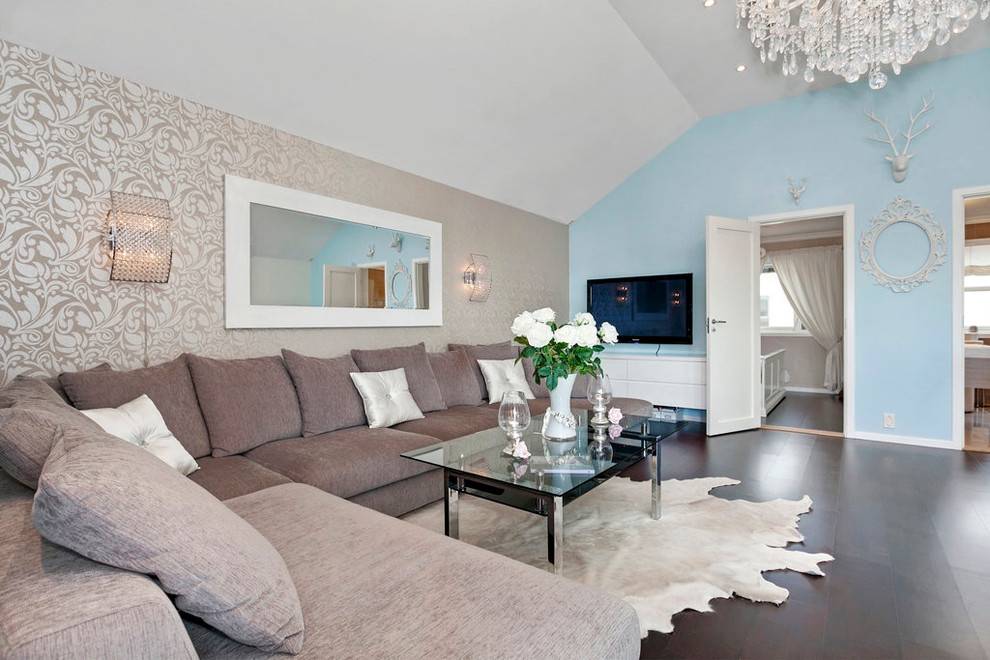 Их нужно выделять друг от друга. Выполняется это и отделочными материалами. Сразу нужно разобраться — как будет использоваться помещение? Для гостиной нормальным состоянием является состояние веселья, хлопот. Там обычно собираются гости. Перед владельцем квартиры стоит задача создания яркой обстановки, чтобы гости не скучали.