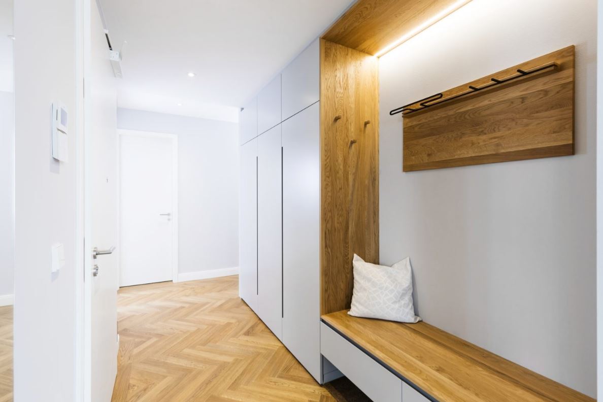 В этой части квартиры с небольшой площадью ни в коем случае не стоит располагать громоздкую мебель. Начало ремонта в прихожей – отличный повод заменить старые шифоньеры и тумбы на современные, компактные и многофункциональные системы хранения.