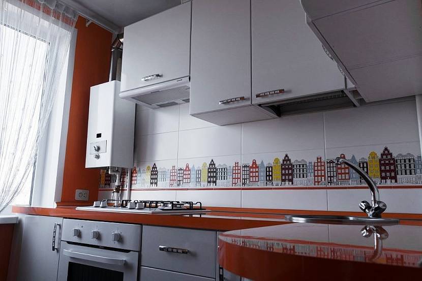 Встраивание газового котла в специальный шкаф позволяет надежно скрыть газовое оборудование, идеально вписав его в интерьер кухни. Такой шкаф не имеет задней стенки, крышки и дна.
