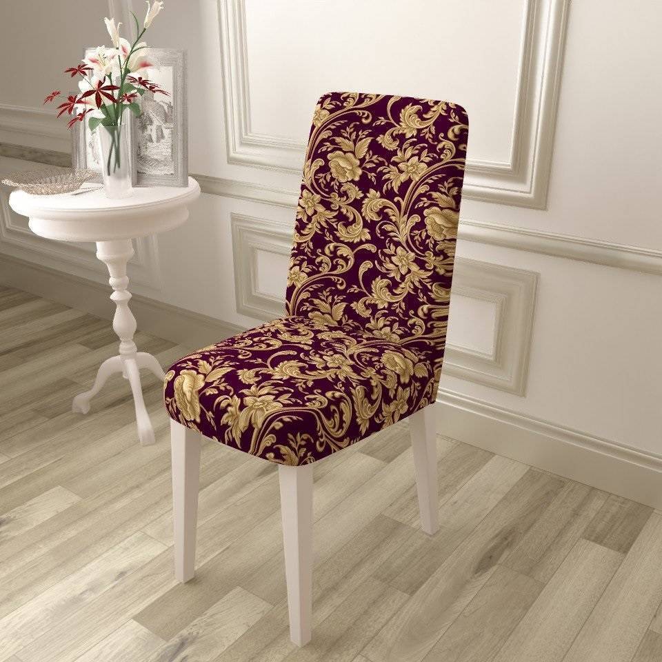 При пошиве чехлов на стулья своими руками существенно расширяется выбор тканей. Если стандартные готовые варианты продаются из однотонного плотного гобелена, то для собственного пошива можно подобрать любой материал.